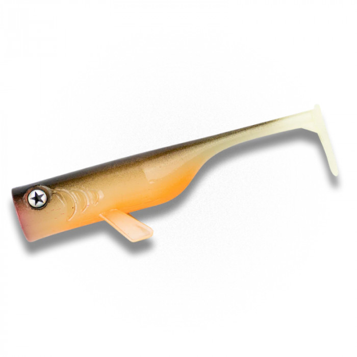Le LMAB Drunk Bait est unique au premier coup d'œil. Le corps robuste et rond, la queue fine et longue et l'énorme palette ne ressemblent à aucun autre softbait sur le marché.