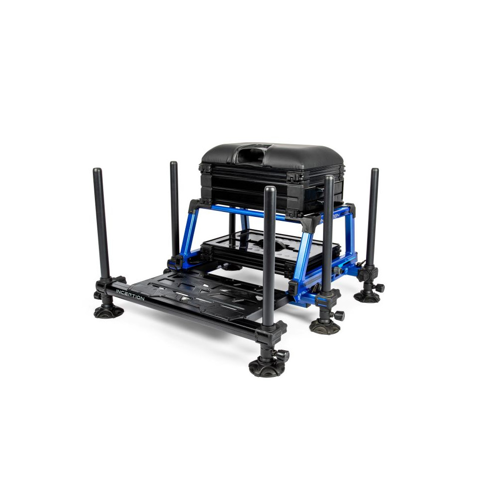 Construit sur un cadre super solide et élégant et fourni dans un bleu en édition limitée, l'Inception Station dispose d'un espace de rangement abondant. Le tiroir latéral à compartiments profonds est parfait pour les accessoires, tandis que le tiroir latéral profond à séparations amovibles peut être utilisé pour les boîtes de longueur de crochet, les enrouleurs de perches ou tout autre accessoire plus volumineux. Un plateau vide et peu profond est situé entre les tiroirs et le siège de la canne, ce qui est encore une fois parfait pour ranger les accessoires de la canne.