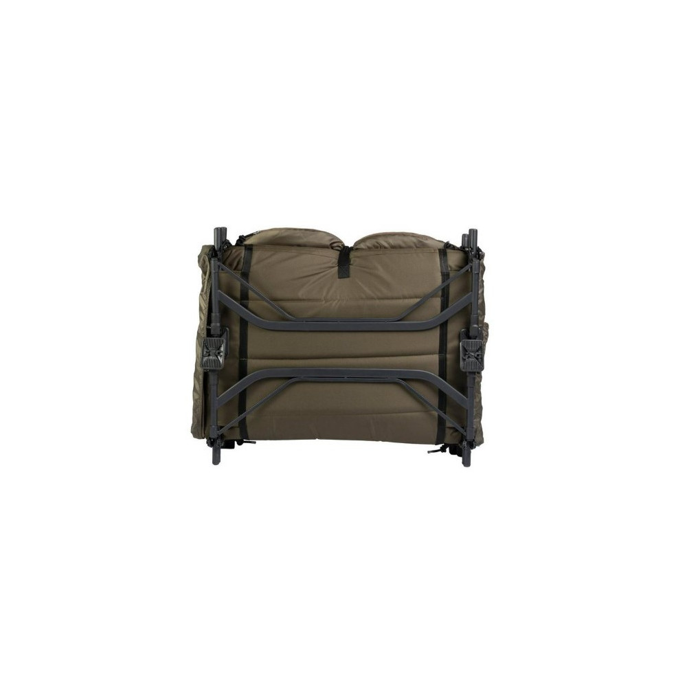 - Dual hinge system creates a flat bed when unfolded and a sleeping bag space that can be attached to the bedchair during transport when folded