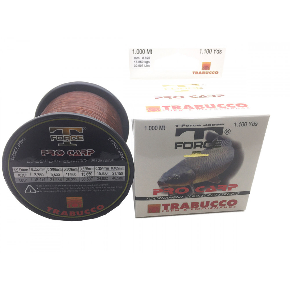 The T Force Carp Trabucco Nylon has been specially developed for carp fishing. With a light brown color, this Trabucco T Force Pro Carp line is particularly discreet. Its anti-abrasion surface coating gives it a good resistance to abrasion in front of the various obstacles of our lakes and rivers. It is particularly well adapted to long distance fishing although less slippery than the T Force enduro especially because it allows casts without a leader from 0.28mm.