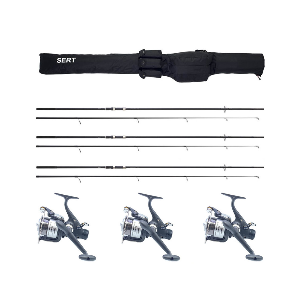 Set of 3 rods AKA FITCARP 10ft 3lbs and 3 reels AKA HRS 401 FD Sert