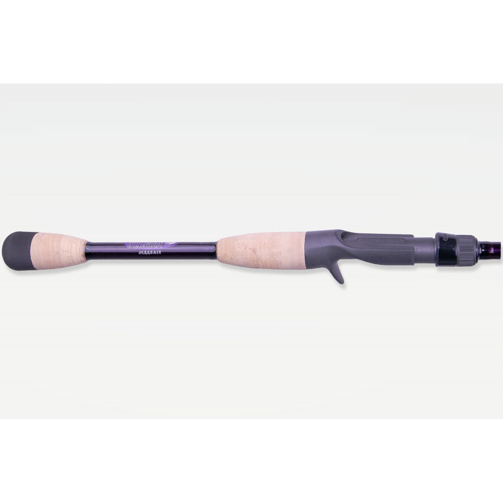 Measuring 2m03 and equipped with a fast action, the Jerkbait model is perfectly adapted to the use of jerk minnow (hard or soft) and other hard lures not exceeding 30 gr. Particularly light and pleasant to use, this rod is very versatile and will also prove to be effective on linear fishing with soft lures, texas light or research with spinnerbaits, chatterbaits and other lipless.
