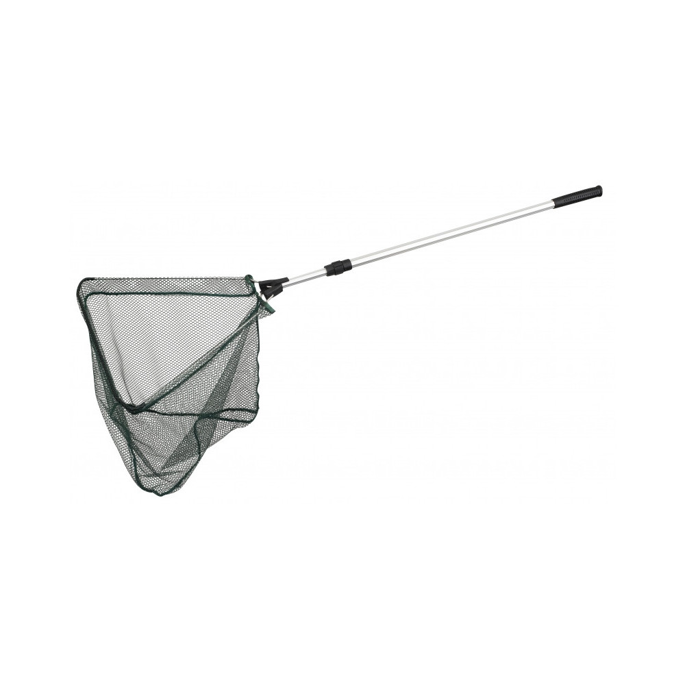 A folding landing net with telescopic handle. Mesh size of 6 mm. Small size.