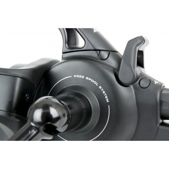 The Eos 12000FS reel Matte black finish with sober logos. Clutch release system on the back Suitable for fishing but also for sounding.