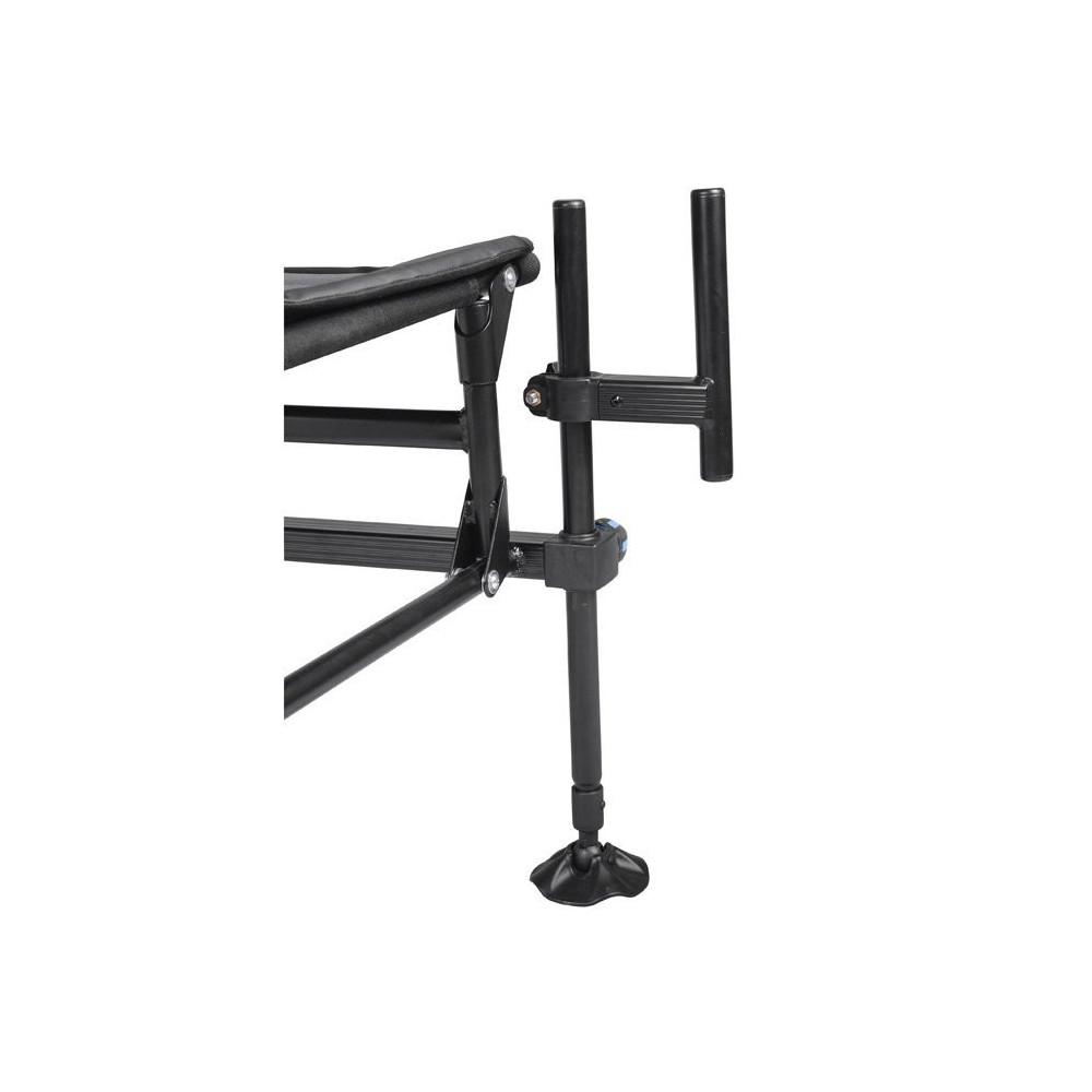 This is due in part to the well thought out design of its frame. The frame has a double folding mechanism, which brings the seat directly to a height of 45 cm. This also creates extra space for accessories on the front legs. The rear is equipped with removable arms, on which accessories such as a fishing rod holder, umbrella holder or bait platform can be placed.
