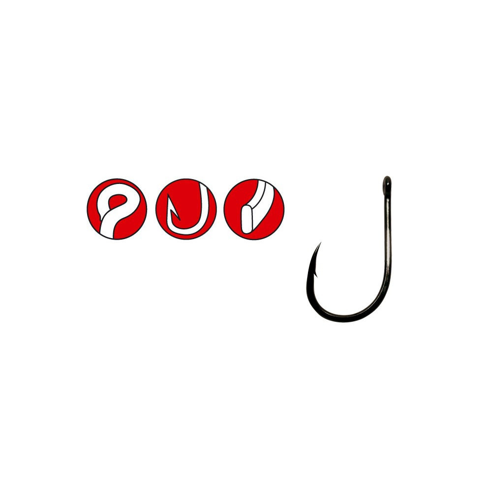 Ultra sharp Power Carp hooks with eyelet, flat forged with a slightly curved shank, perfect for big fish fishing with feeder, jigging or match fishing. Perfect for knotless hair-knot rigs.