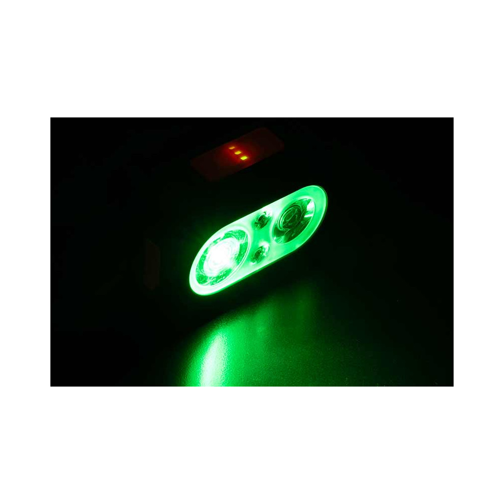 - Multicolor LED: white light (500 / 120 lumens), green (130 lumens), red (50 lumens).