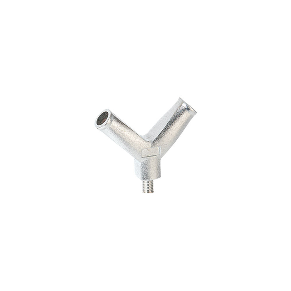 Universal aluminum V-shaped landing net fork with screw that fits all standard landing net handles.