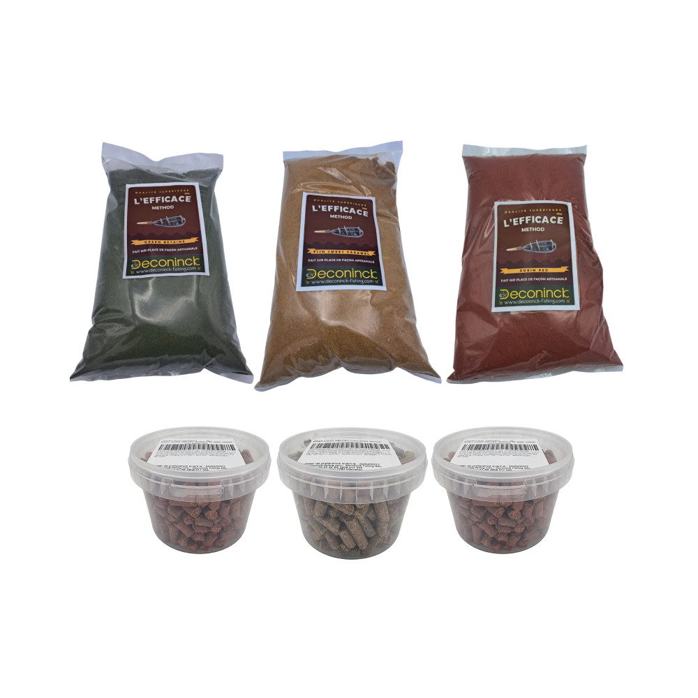 Pack Amorce Method L'Efficace 3 x 2kg + Babycorn Pellets 3 x 400g