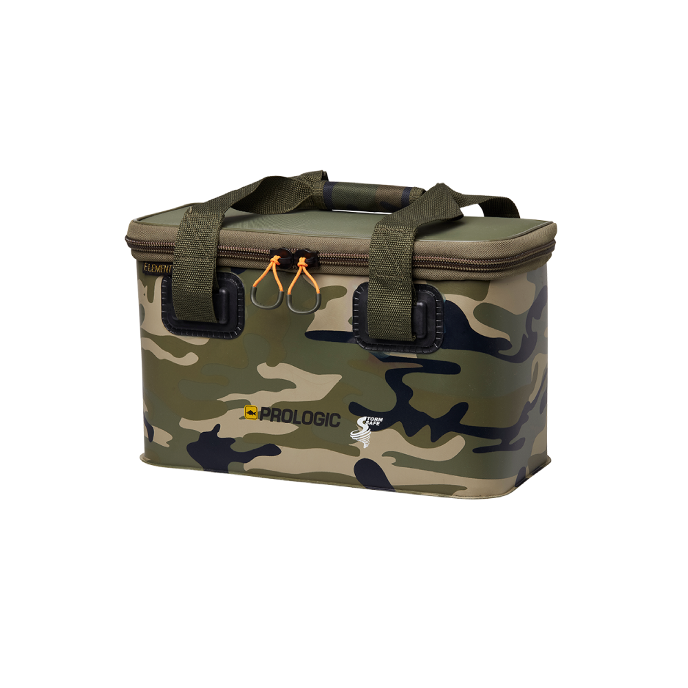 Our new Element Storm-Safe refrigerated bait bags do exactly what their name suggests: not only are they designed to repel water and keep their contents safe and cool, they can also withstand the biggest storms Mother Nature can unleash. The combination of our tough, extremely durable camouflage EVA on the outside and our insulated thermal lining on the inside ensures that your bait will stay cooler for longer, and won't be spoiled by the elements or rodents that might pass through overnight. The bait bags are dual-purpose, with integrated mesh bags for air-drying, making them ideal if you need to transport your boilies and air-dry them during longer sessions. There are two bags available in the range, supplied with one large or two medium-sized air-drying bags, so you can choose the one that best suits your fishing style.