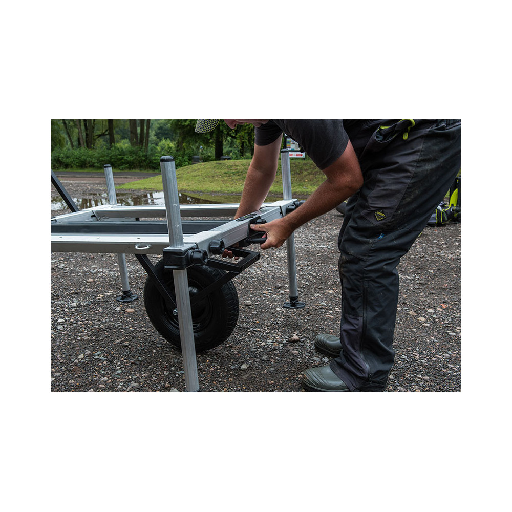 - Handles and wheel are easily removable, allowing the platform to be used in a conventional manner