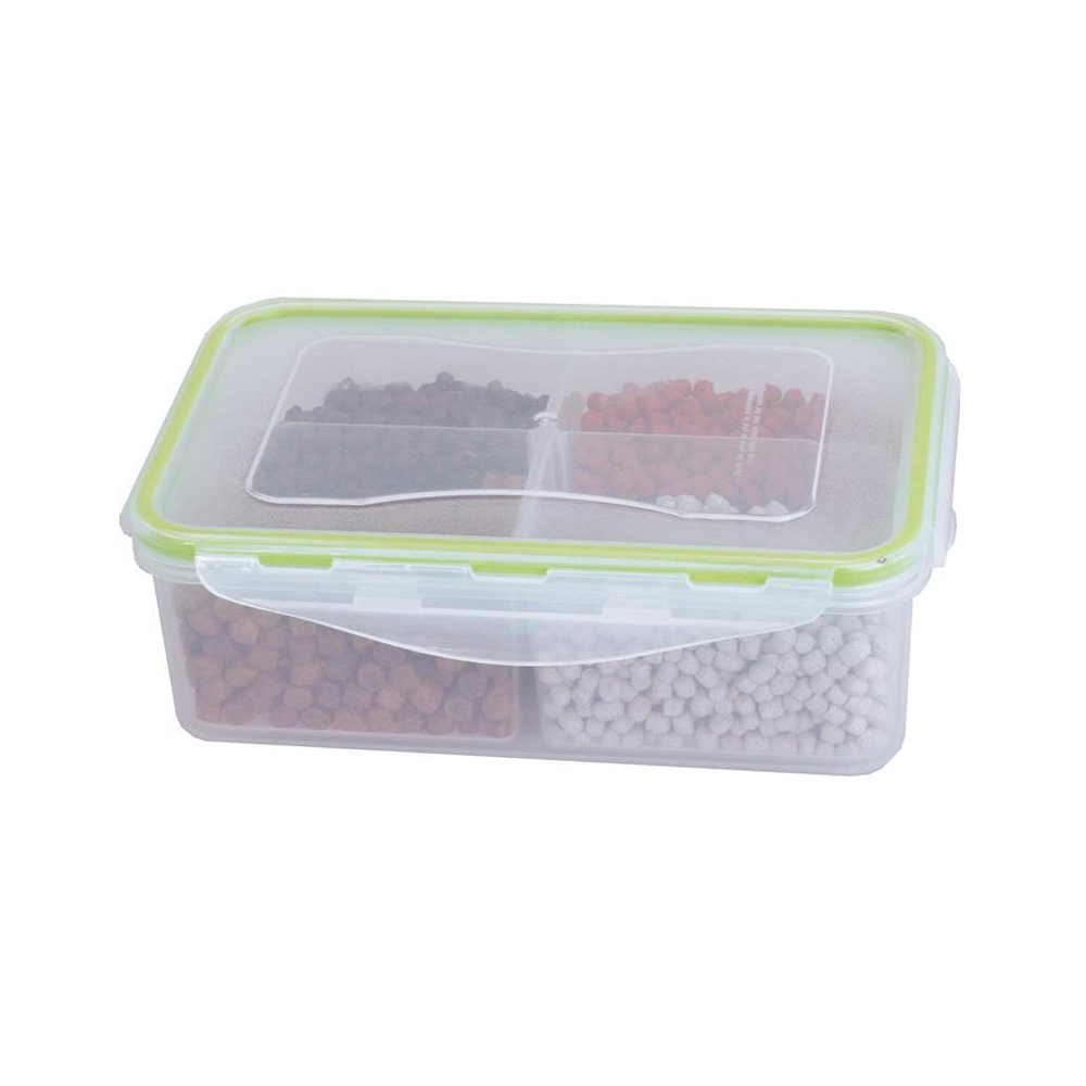 Carpodrome L pelletbox met 4 compartimenten. Een zeer robuuste en waterdichte box met een zijrand om een veilige sluiting te garanderen.