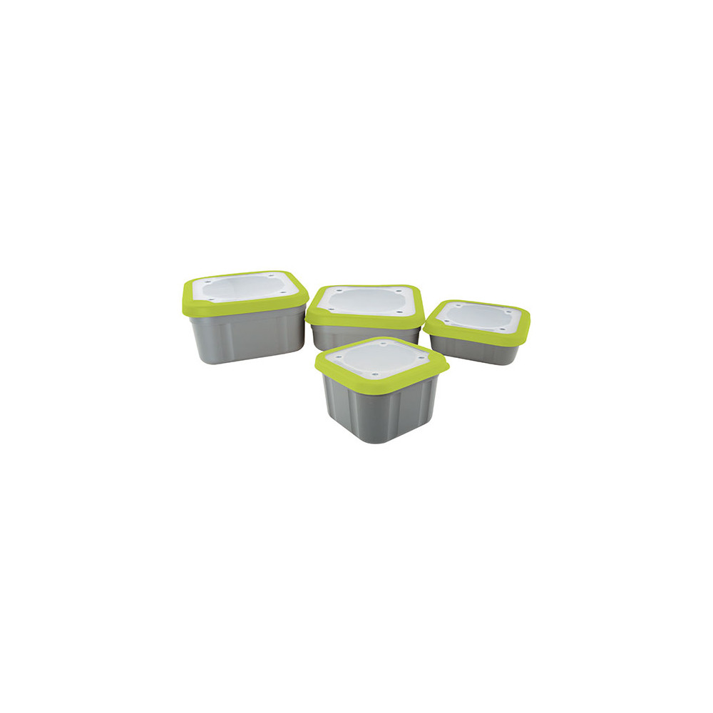 Deze nieuwe aasdozen met vast deksel zijn gemaakt van slagvast plastic en hebben zachte rubberen deksels voor een perfecte pasvorm. Het stevige deksel voorkomt dat er vloeistof in of uit kan lopen, waardoor ze perfect zijn voor nat aas zoals suikermaïs of om bederfelijke waren droog te houden. Verkrijgbaar in 4 maten: 1.1pt, 2.2pt, 3.3pt en 1ltr Compact.