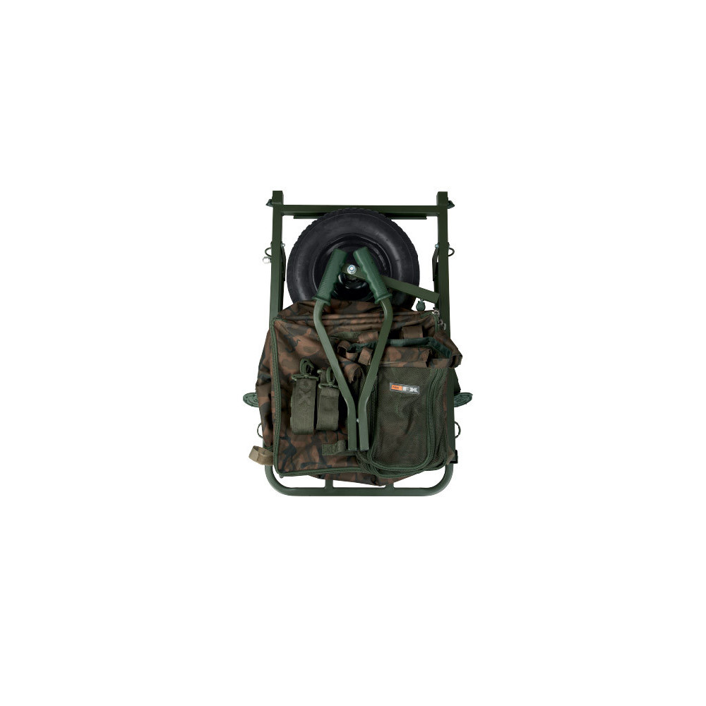 - Uitschuifbare voorlaadbak: bevestig de Camolite Barrow Bag (apart verkrijgbaar) aan de voorkant van de kar wanneer u een bedchair moet kunnen laden. Als u de hele dag onderweg bent, schuift u de voorste lade gewoon onder het frame en de Barrow Bag past in de middelste lade, naar u toe. Het ontwerp van de trolley houdt hem zowel in de korte als in de lange stand in evenwicht