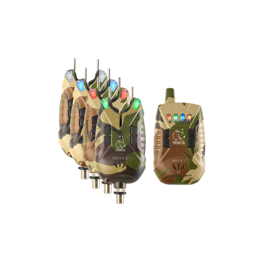 De Prowess INSEDIA RS Camou detectors hebben dezelfde functies als de zwarte versie, maar dan met een camouflage-afwerking. Ze hebben alle instellingen: volume, toon en gevoeligheid. Er zijn verschillende instelniveaus beschikbaar voor een zeer fijne afstelling, allemaal eenvoudigweg door op de knoppen te drukken. Elke detector heeft ook een set snag bars en een nachtmodus. Aan de onderkant van de behuizing zit een aansluiting voor verlichte visuele toetsindicatoren.