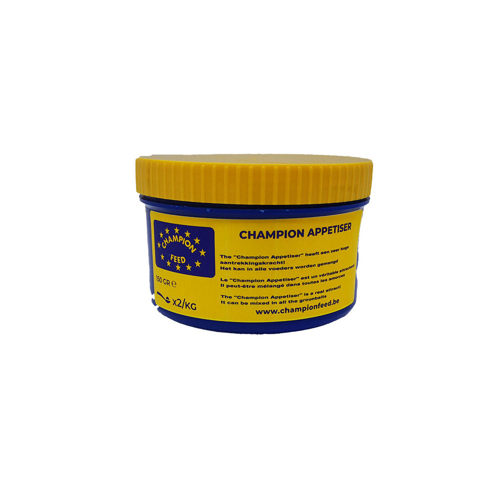 Champion Appetiser is een echte lokker! Het kan in alle aas gemengd worden. Het bijzondere ervan is dat de vissen zeer snel verteren en zich blijven voeden zonder verzadigd te raken.