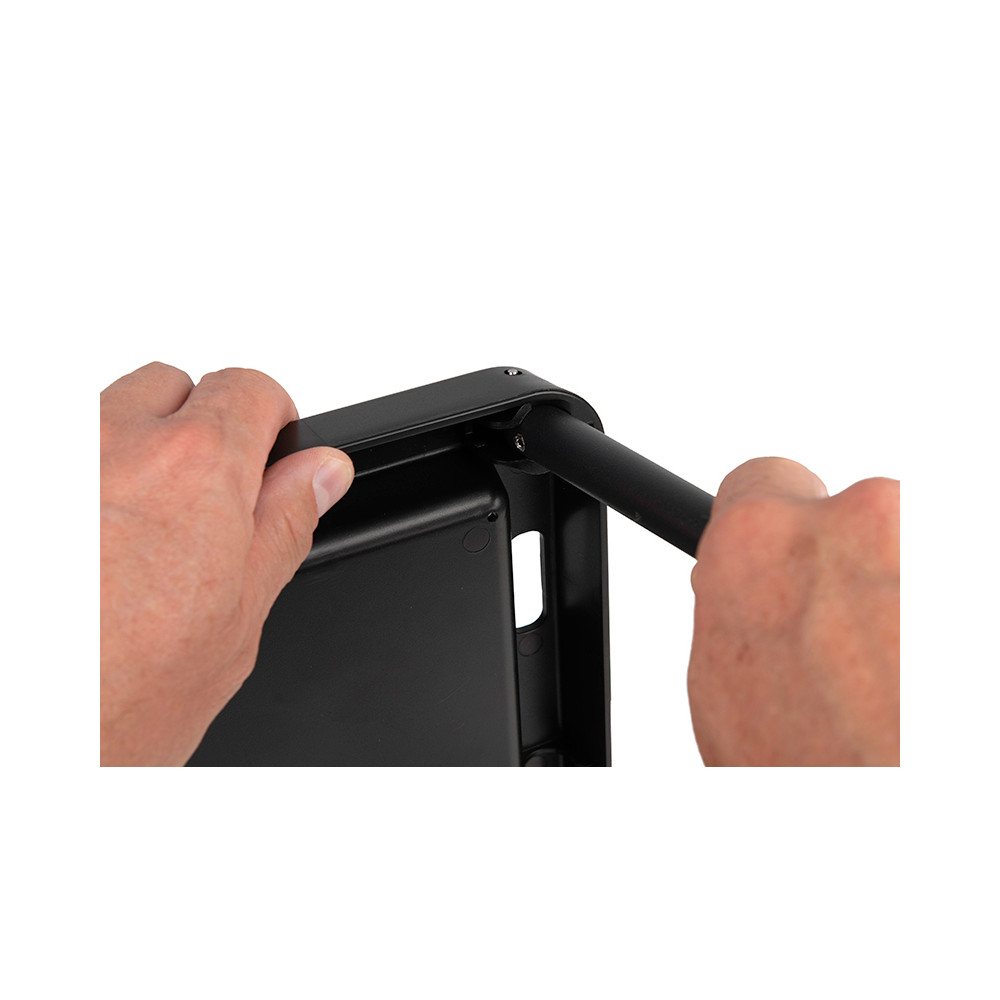 Opvouwbaar voor opslag, de poten zijn voorzien van Cam Lock verlengstukken met grote draaibare voeten.