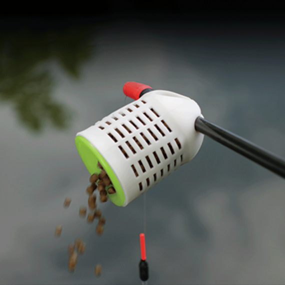 - Je kunt het gebruiken om heel precies te azen met pellets, zaden... of voor het afzetten van de pasta en je rig.