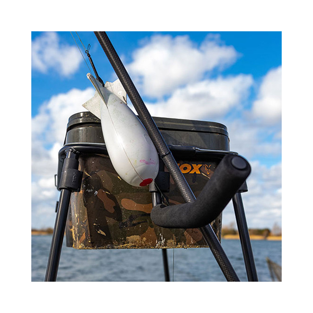 De dubbele Spomb emmerhouder houdt uw emmer op de perfecte hoogte en voorkomt dat u moet bukken om Spomb of Impact Spod te vullen.