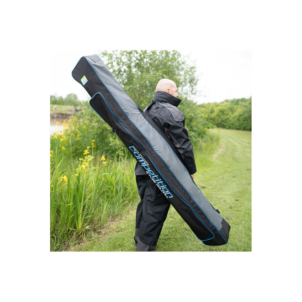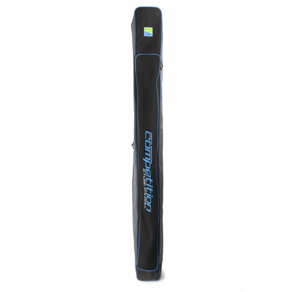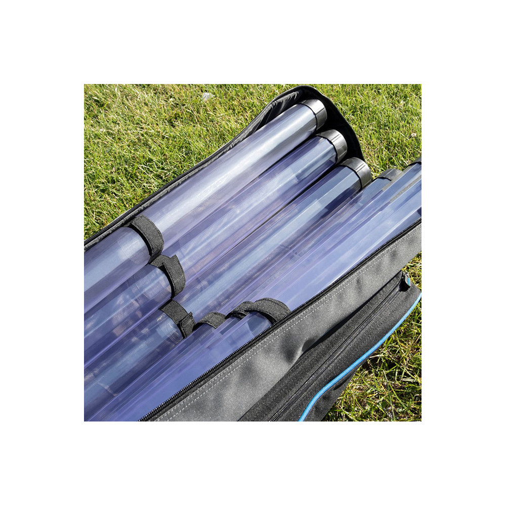 Compacte koffer, perfect voor het opbergen van uw hengels, er passen 6 lange buizen in die op hun plaats worden gehouden door interne klittenbanden. Het heeft een extern vak dat perfect is voor een schepnet, paraplu of spikes.