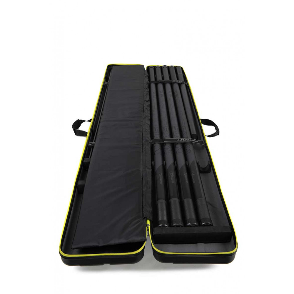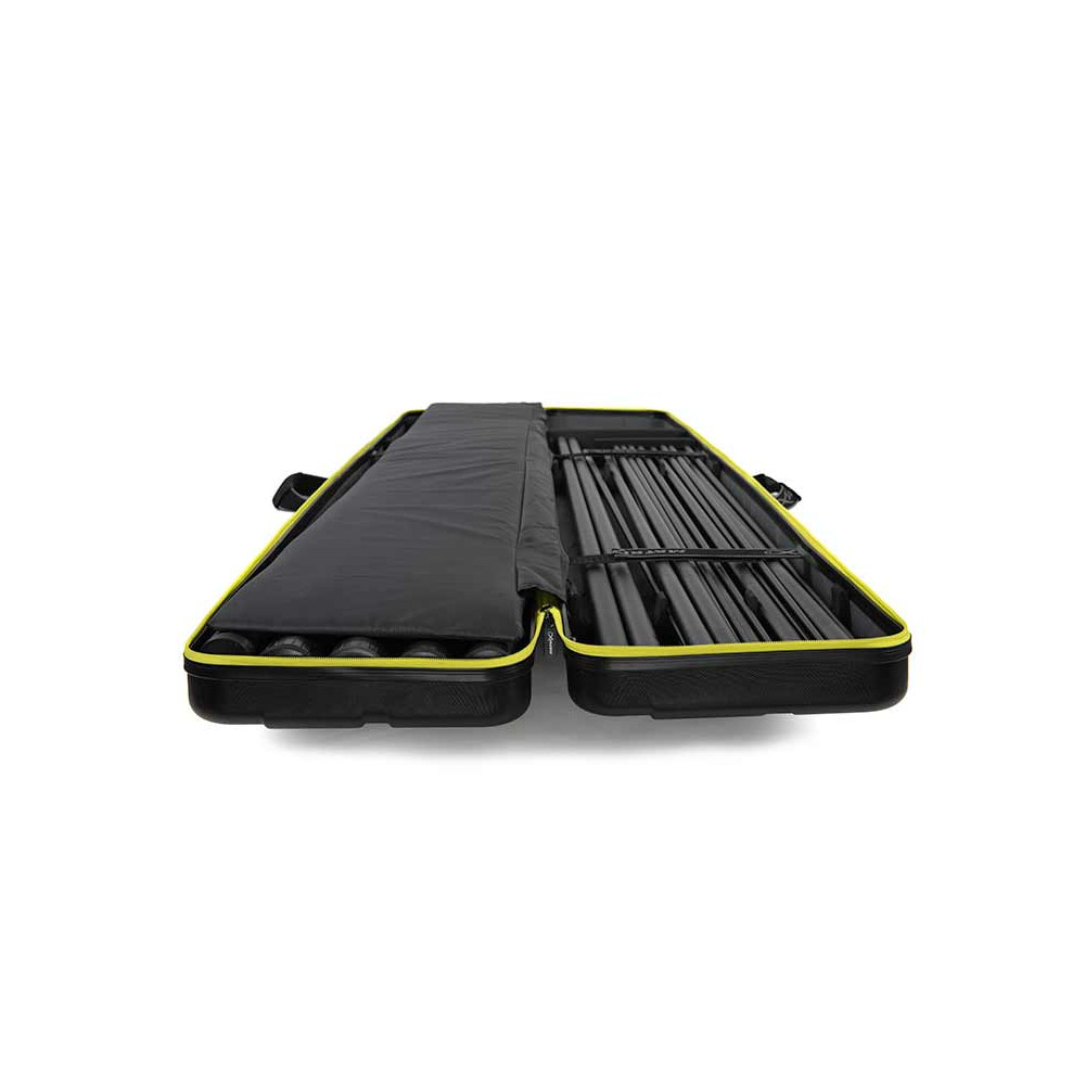 Gemaakt van duurzaam materiaal voor maximale bescherming van je hengel. Geschikt voor het opbergen van 30 sets plus 4 hengeldelen (17,5 m) Verwijderbare schuimrubberen inzetstukken voor topkits en hengeldelen Schuimrubberen inzetstukken beschermen je hengeldelen en voorkomen dat sets verschuiven. Gewatteerde verdeler voorkomt dat de koolstof tegen elkaar botst tijdens transport.Lengte van 195 cm voor kits met één hengel en hengelsecties plus Gewatteerde binnenvoering voor bescherming Binnenste bevestigingsriemen. Neopreen handgrepen Schouderriem Gemakkelijke toegang dankzij doorlopende ritssluiting Afmetingen - B195 x H13 x Gewicht - 4,8 kg