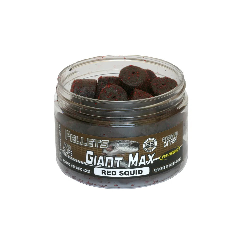 Het Giant Max-assortiment is het resultaat van een nauwe samenwerking tussen Fun Fishing en meervalspecialisten. Het resultaat is een reeks technische lokazen die zowel zeer aantrekkelijk als licht verteerbaar zijn. Uitgewerkt op basis van vismeel/vlees, is dit gamma bijna 100% vlezig en een echte meervalmagneet.