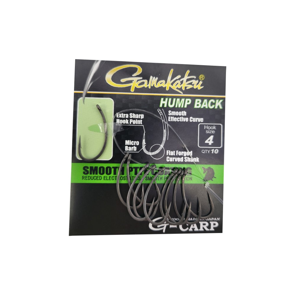Dankzij de speciale SEC vorm (Gladde Effectieve Kromme) draait deze haak automatisch richting de onderlip en prikt snel. De speciale 'plat gesmede gebogen schacht' geeft hem extra kracht en weerstand. De Micro weerhaak is ideaal voor Super Snel Haken. Bovendien onthaakt een Micro weerhaak ook gemakkelijk en beperkt hij de schade aan de bek van de vis tot een minimum. Met een Short Line Aligner is deze Gamakatsu Humpback een Super Snelle prikker! De Ultieme Dunne Punt biedt Extra Hooking effect. Maten: 2 - 10, 10st per pak.