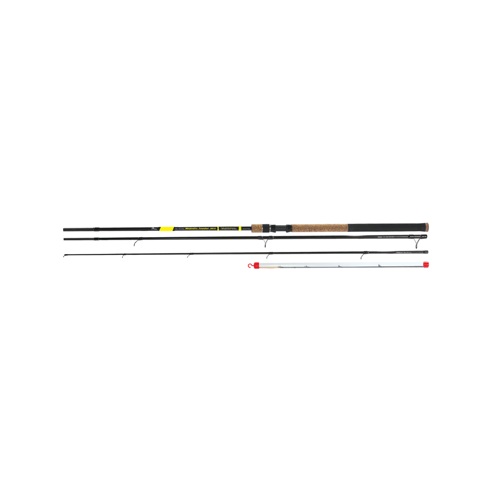 Majestic Feeder 3.6m (20-80gr) feederhengel gemaakt van high modulus T30 carbon met een dynamische actie en een fijne blank voor uitstekende prestaties. Het handvat is gemaakt van een mix van natuurlijke kurk en EVA voor comfort en ergonomie.