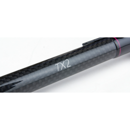 Hoewel de blank krachtig is, behoudt de TX-2 een zeer zacht gevoel tijdens het vechten, wat essentieel is voor het behouden van een goed contact met de vis. De hengel heeft ook een plastic lijnclip aan de onderkant van de blank. Tenslotte maken de fijne en discrete roze lijnen, prachtig geïntegreerd in de zwarte blank, de nieuwe TX-2 echt onweerstaanbaar.