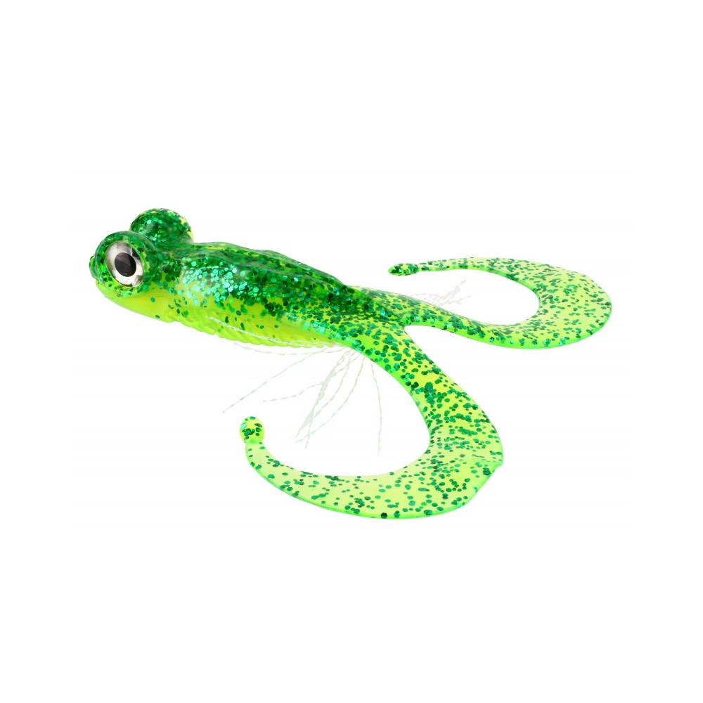 Een kleine tip bij het vissen zonder gewicht: vul het kunstaas rijkelijk met lokstof om een goede stabiliteit te verzekeren en om de dichtheid te wijzigen en zo de daalsnelheid te veranderen. Deze gegroefde textuur is zachter en zal ook de greep van een roofdier verlengen en u tijd geven om effectiever toe te slaan! Deze BULL FROG is ook uitgerust met een paar strengen tincels om zijn aantrekkelijkheid te verhogen! Ongetwijfeld zal het moeilijk zijn voor hem om "incognito" te passeren in een oever van waterlelies! Aanbevolen Texas haak: #4/0 widegap. Anijssmaak.