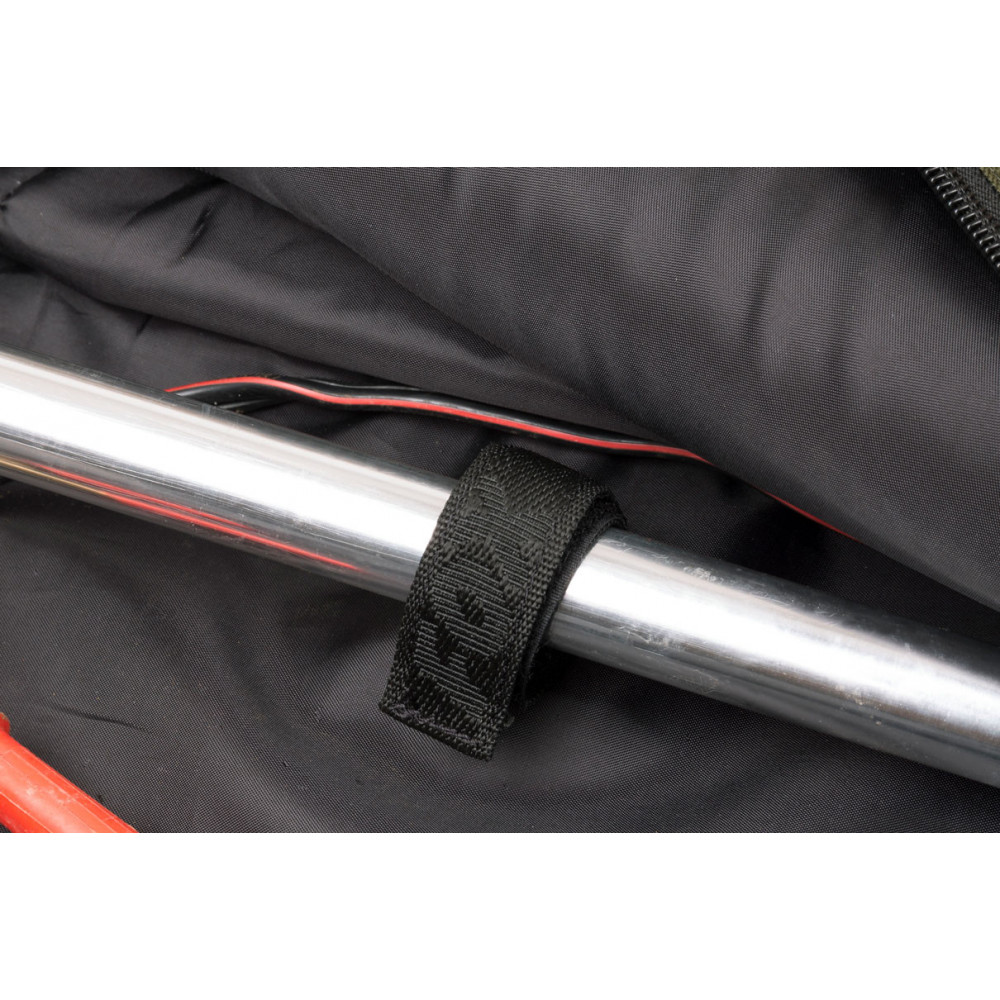 - Twee versterkte plastic handvatten aan de bovenkant van de tas om de motor in en uit je voertuig te halen