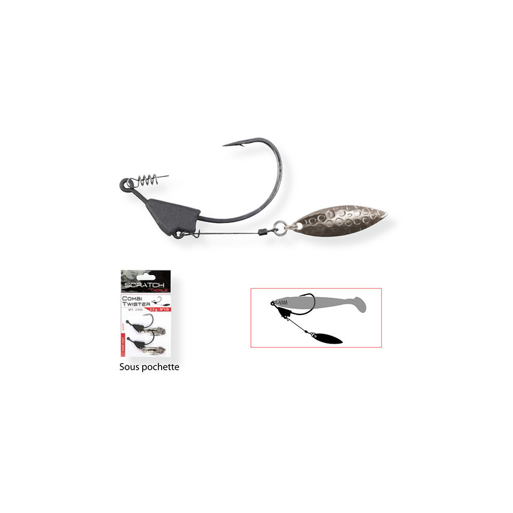 De Combi Twister heeft een Hitch Hiker veer die ervoor zorgt dat het zachte kunstaas perfect op de haak blijft zitten en tegelijkertijd zorgt voor een goede knik zodat de Texan automatisch wordt losgelaten.