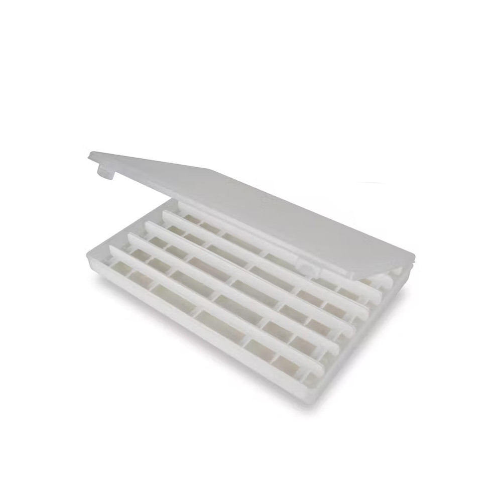 Schokbestendige plastic dozen met Stonfo mappen erin.