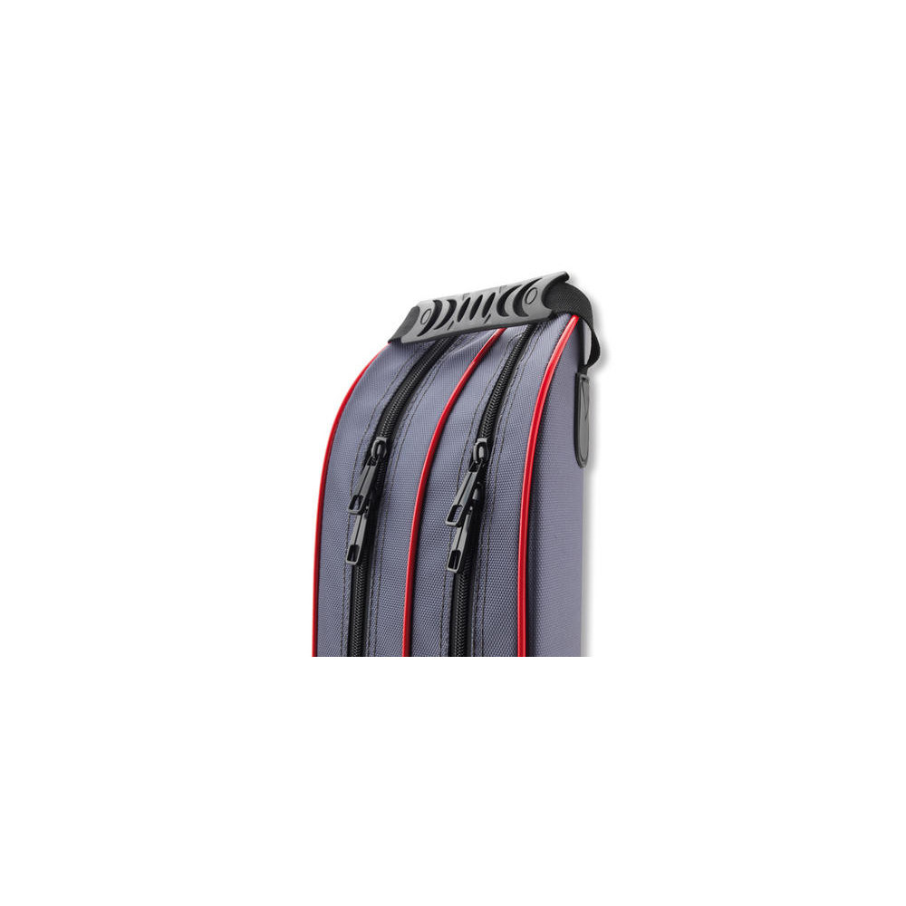 Deze halfstijve holdall biedt plaats aan twee gemonteerde hengels. De stevige buitenkant beschermt hengels en reels tegen schokken tijdens het vervoer. De brede schouderriem biedt maximaal comfort, zelfs over lange afstanden.