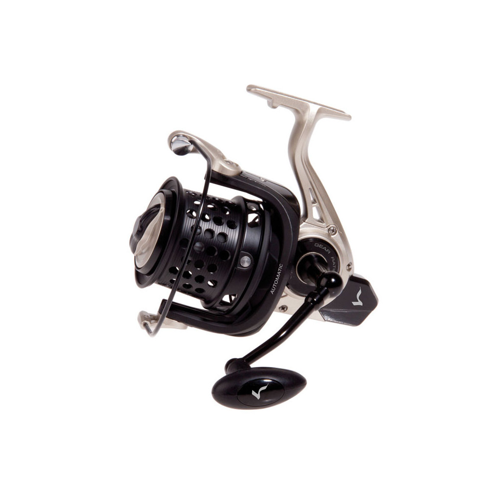 Surfcasting reel gemaakt van ultralicht, corrosiebestendig polymeer.
