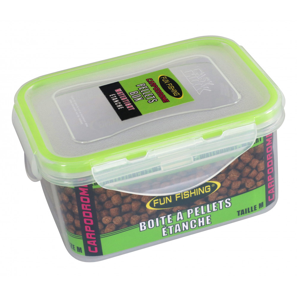 Onze pelletkisten zijn extreem robuust en 100% waterdicht. De flappen rond de rand van het deksel zorgen voor een perfecte afdichting. Ze zijn ideaal voor het bewaren of weken van pellets. Verkrijgbaar in 2 versies, ze voldoen aan al je behoeften! Let op: maat L is een doos met verwijderbare tussenschotten zodat je je aas apart kunt houden tijdens transport, opslag of vissen.