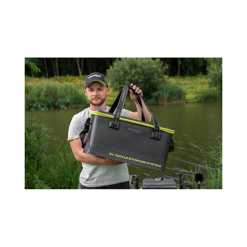 Geleverd met 6 binnentassen met doorzichtige deksels Ontwikkeld als een modulair systeem om je uitrusting georganiseerd te houden. Ideaal voor het opbergen van accessoires, feeders en leaderboxen. Gemaakt van duurzaam EVA met thermisch verzegelde naden. Het voorgevormde deksel voorkomt dat er water in de tas sijpelt. Handgrepen en afneembare schouderriem. Voorgevormde voetjes om slijtage te voorkomen. XL hoofdtas en kleinere tassen afzonderlijk verkrijgbaar. Afmetingen 550 x 300 x H285 mm. Hoofdmateriaal 100% EVA / Heldere deksels 100% PVC.