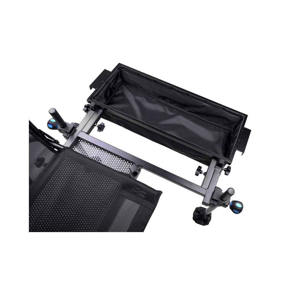 Dit model is ook goed uitgebalanceerd en gemakkelijk te besturen, waardoor het ook op steile of modderige ondergrond gemakkelijk op zijn plaats komt. De kleine metalen aastafel biedt voldoende opbergruimte voor accessoires. Wanneer hij rechtop staat, kan hij worden gebruikt om een tas of andere accessoires tijdens het vervoer vast te zetten. In de EVA-tas kunt u accessoires opbergen en dankzij het ontwerp is het frame verstevigd voor een veiliger transport. Wanneer de EVA-tas wordt verwijderd, kan hij gemakkelijk op zijn kant worden gelegd. De twee legplanken zijn ruim genoeg voor de Cresta EVA serie. Dankzij de positie van de zitting en de ruimte tussen de vier poten worden de krachten tijdens het zitten goed verdeeld. Een zeer stabiel model!